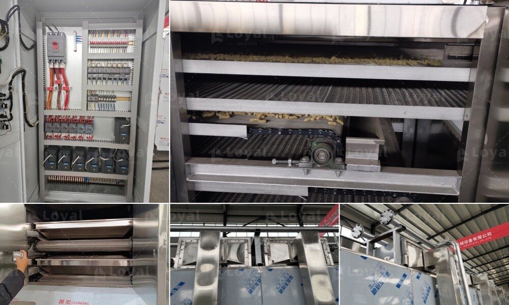 Critical factors in the drying process include temperature, airflow, conveyor speed, and drying time. By adjusting these parameters, manufacturers can achieve the ideal moisture content, resulting in a consistent crispy texture and appealing color. The oven’s continuous multi-layer design allows for even distribution of hot air, reducing the risk of uneven drying.