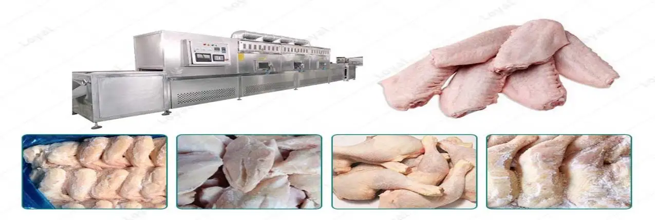 Thawing: rewarming " means increasing the temperature of a frozen food from a deep freezing state to a value below zero. Generally about-5℃, at this time the food can be sliced, segmentation. Thaw must raise the temperature to room temperature or above 0℃ to take the food out of the freezing state. The use of microwave techniques has many outstanding advantages over conventional methods. For example, the processing time is greatly shortened, easy to control, product quality is good, color and freshness can be maintained, less nutrition and water loss, low bacteria content, efficient and low cost, less energy consumption, small area, working conditions and environment have been improved.