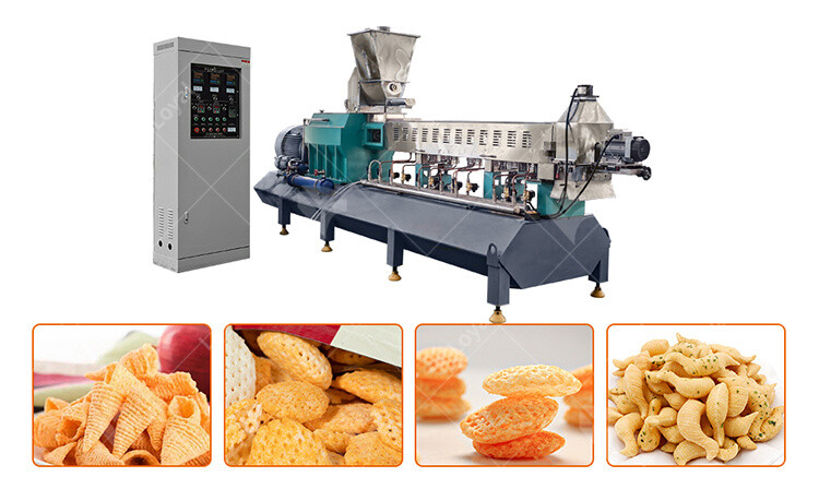 3.Double Screw Extruder: The dough is then extruded using a machine that shapes it into the familiar triangle shape of Doritos. The extrusion process applies heat and pressure to the dough, which helps to create the crispy texture that is a hallmark of Doritos.