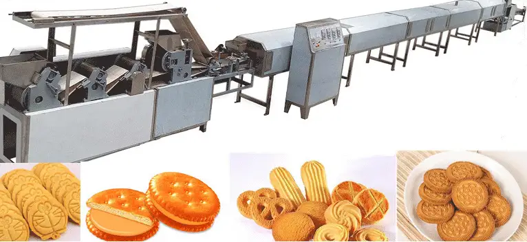 The cookie production line takes flour as the main material, adds sugar, protein, dairy, and other auxiliary materials as raw materials, enters the mixer and mixes well, then is transported by conveyor to the forming machine. After molding, enter the oven to bake to a certain degree to paint the paint and cool by the cooler. After cooling, the packaging can be carried out. At this point, the production of the biscuit is completed.
