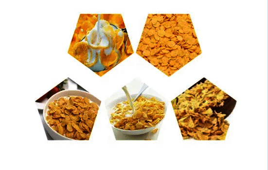 5 、 Reasonable equipment configuration and achievable process control ensure the production of nutritious and crisp breakfast cereal corn flakes of various shapes and sizes.