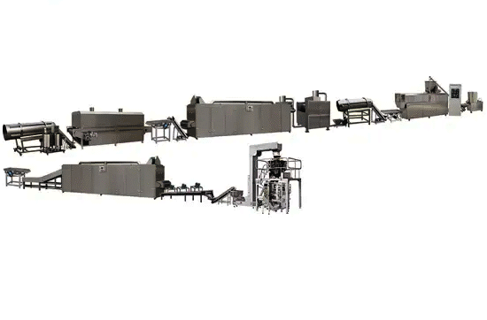 The corn flakes production line can produce a variety of breakfast cereal snacks as instant food with corn, rice, oatmeal and other cereal flours and vitamins and some other healthy nutrients as raw materials. Breakfast cereals are available in different molds, such as rings, balls, stars and sticks, and the production line can also produce other puffed snacks. Corn Flake cereal processing equipment is the multifunctional line, which is the best choice for producing breakfast cereals.
