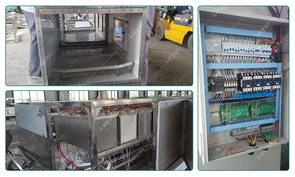 After the food absorbs microwave energy into heat, the food temperature rises. The water contained in the food evaporates, dehydrates, and dries; if the dehydration rate is adequately controlled, the food structure can be loosened puffed when drying the food. In this process, the heating temperature of the Microwave Drying Machine can also be controlled to increase so that the food is baking.