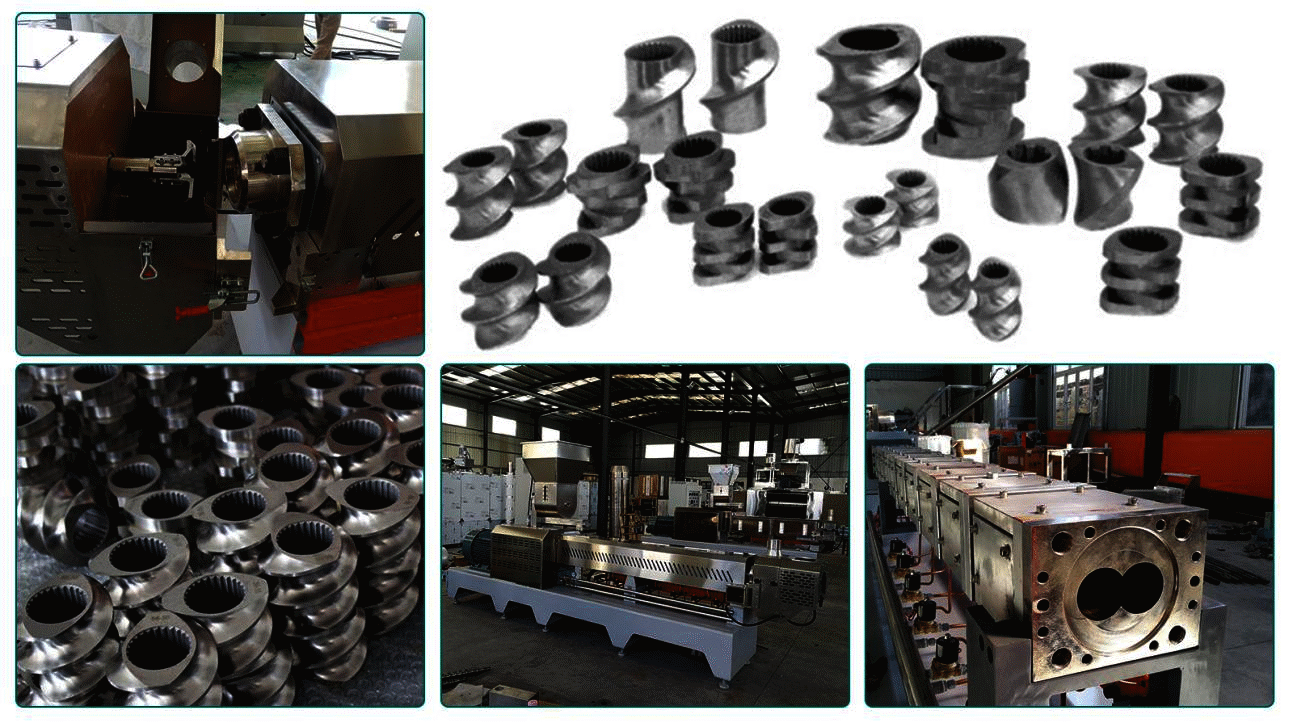5)Double screws feed equal materials forcibly.