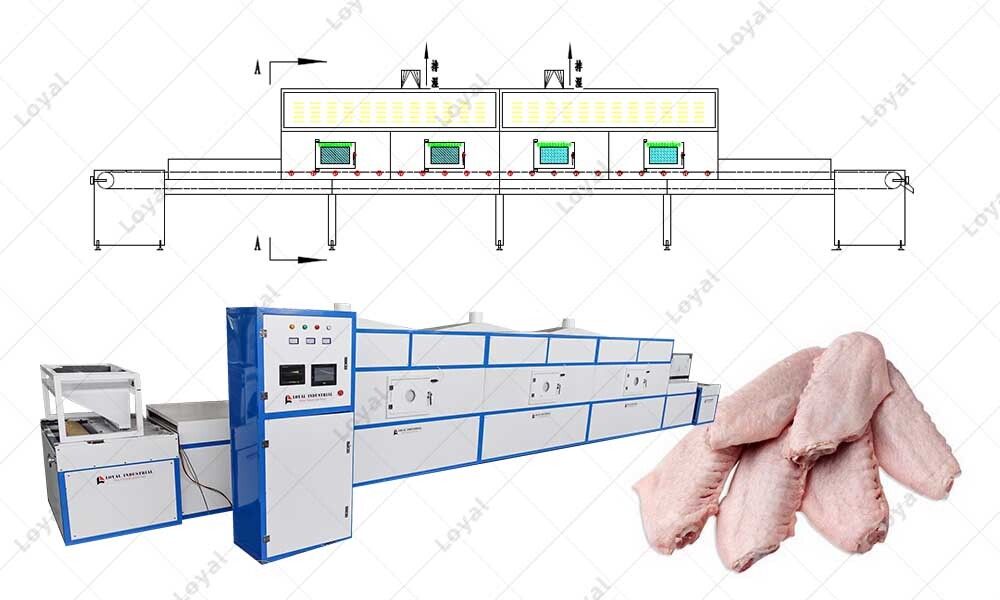 Hogar Noticias Industrial Tunnel Microwave Frozen Chicken Thawing Machine