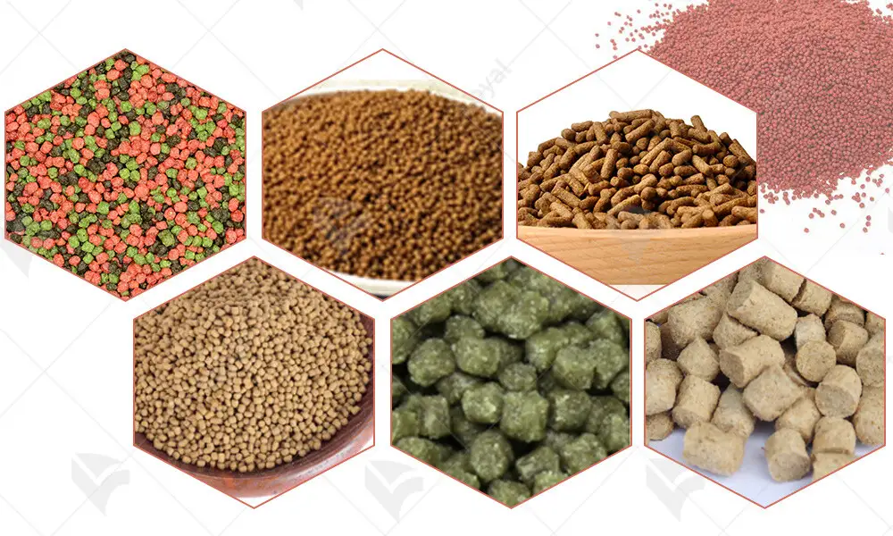 • Granule type: spherical (microgranules for ornamental fish), formed by extrusion through a die.