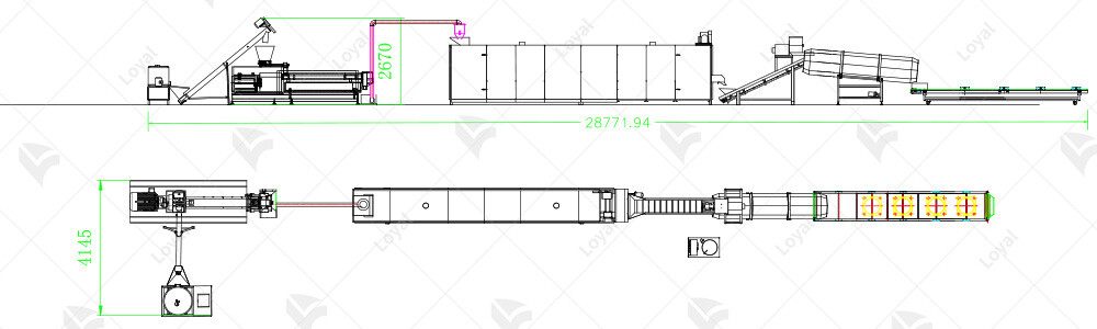 3. Twin-screw extruder | The raw material will be extruded and expanded into a high temperature and high pressure state. |