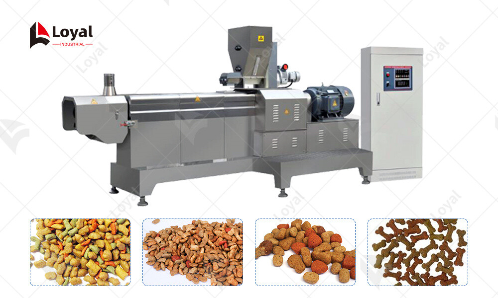 A dog food extruder is a specialized industrial machine used to mix, cook, shape, and extrude ingredients into finished dog food products.