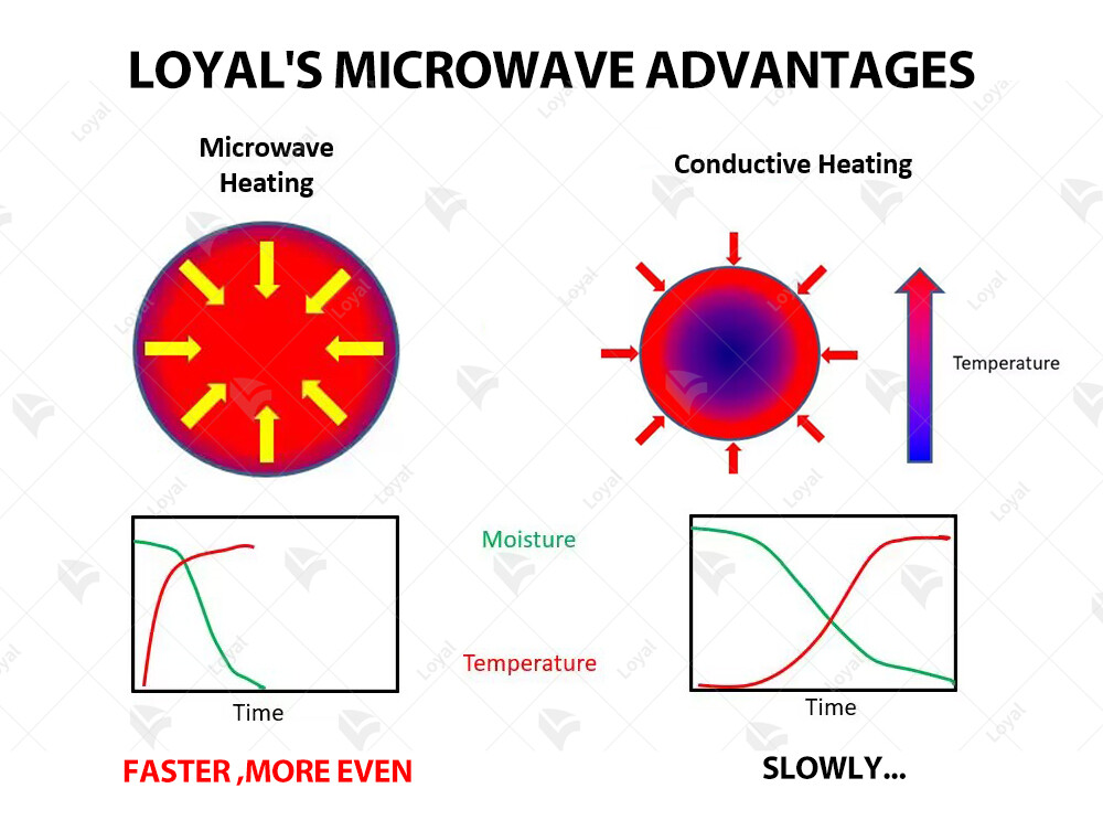 Heating Mechanism | Utilizes microwave radiation to directly heat and evaporate moisture within the food product. | Relies on convection, conduction, or radiation to transfer heat to the food product, causing moisture evaporation. |