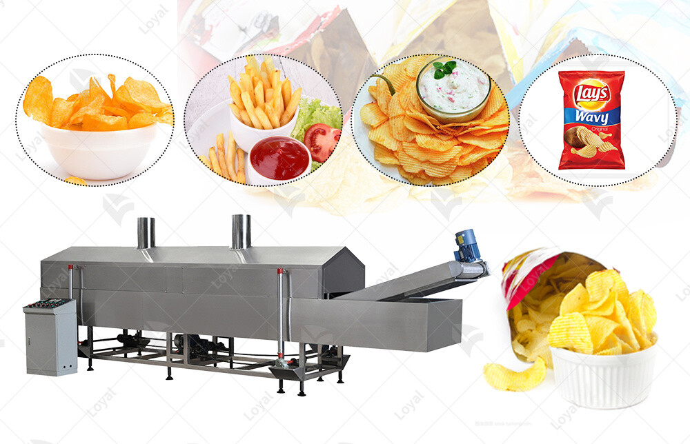 A fully automatic potato chips production line is a series of machines and equipment designed to automate the process of making potato chips from raw potatoes. Fully automatic potato chips production line includes several stages, such as washing and peeling the potatoes, slicing them into thin chips, frying the chips, seasoning them, and packaging them.The fully automatic potato chips production line is designed to ensure high efficiency and consistency in the quality of the final product, as well as reduce the need for manual labor. Fully automatic potato chips production line is commonly used by food manufacturers to produce large quantities of potato chips in a short period of time, and the machines used in the fully automatic potato chips production line can be customized to meet specific production requirements.