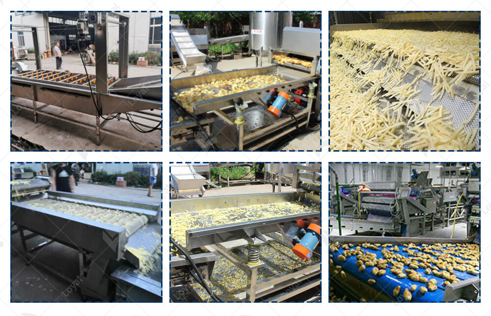 7.Vibration De-watering Machine:Under the high-frequency vibration of the vibrating motor, the moisture on the outside of the potato strip is fully removed.