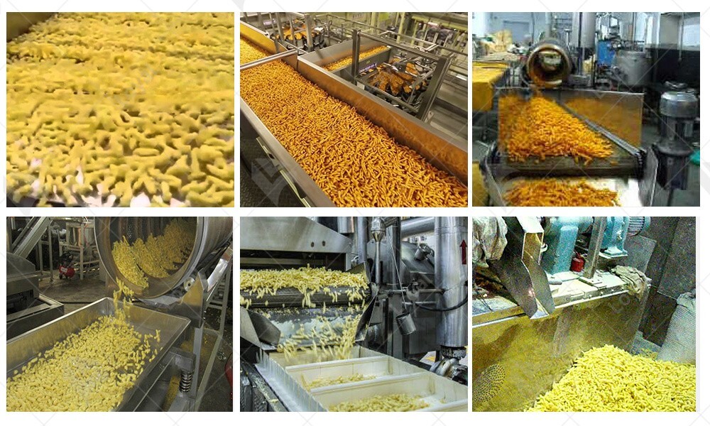 In the frying stage, maintaining the correct oil temperature and frying time is critical for achieving the signature crispness of corn curls. Overcooking can lead to hard, over-fried snacks, while undercooking can result in a soggy texture. The corn curls manufacturing equipment is designed to address these challenges by providing precise control over cooking conditions, ensuring that each batch of corn curls is consistently light, crispy, and full of flavor.