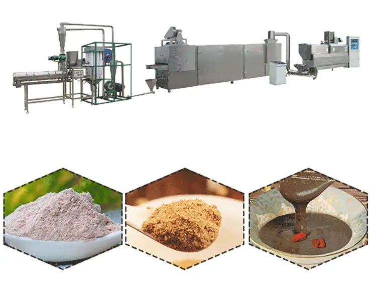 Baby Food Production Line is made of food-grade stainless steel, durable, clean, and easy to clean. It has a highly automated production method to help manufacturers achieve efficient and high-quality production. The production process is pollution-free, has no leakage of powder, and has very high-cost performance.