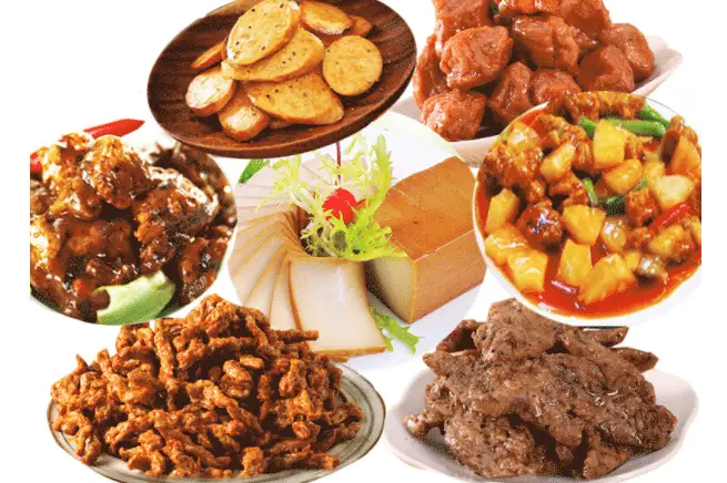 Protein meat is the latest production in Soybean productions, is the only plant food that can replace animal protein. Protein is rich in protein (50% dry base) and a variety of amino acids and dietary fibers, rich nutrients and unique flavor. Its protein content is much higher than the meat, and the fat content is lower than the meat, and does not contain cholesterol. And the taste is more delicate than meat, and it is good for all ages. It is an ideal healthy bean product.