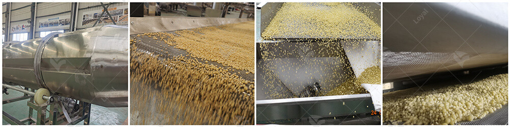 6. The advantages of the dog food production line are very prominent. It has more obvious benefits than traditional equipment. The dog food production line mainly goes through the production processes of raw material mixing, screw conveying, extrusion, air conveying, drying, air conveying, seasoning, cooling, and packaging.