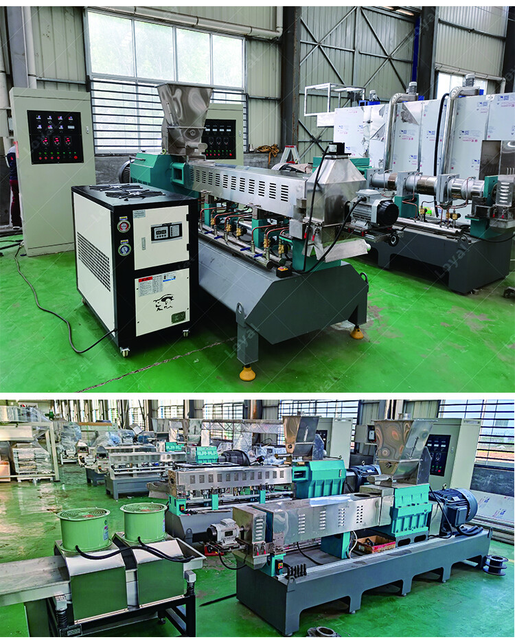 4.Extrusion: The conditioned mixture is then extruded through a die, which shapes the mixture into small pieces or pellets.