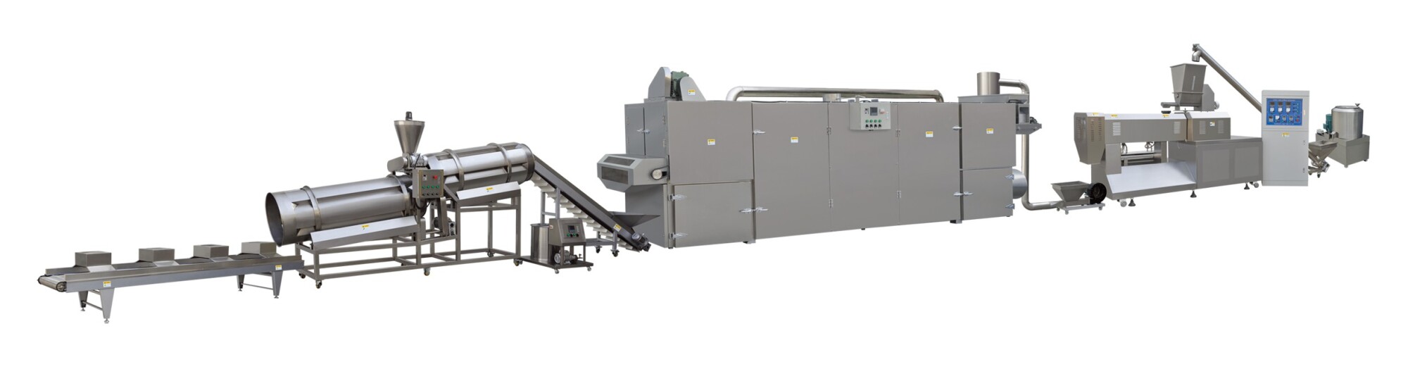 1.Mixer --- 2. Scre Conveyor --- 3. Twin Screw Extruder --- 4. Air Conveyor --- 5. Muliti-Layer Oven --- 6. Hoister --- 7. Flavoring Line --- 8. Cooling Conveyor --- 9. Packaging