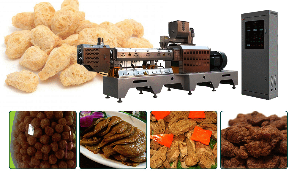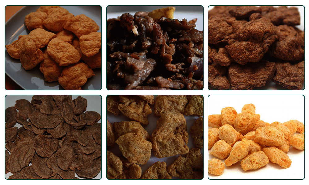 Textured protein products is a new type of soybean product such as soybean protein isolate and soybean tissue protein extracted from low-temperature soybean meal as raw material.Can be made by soyabean chunks making machine