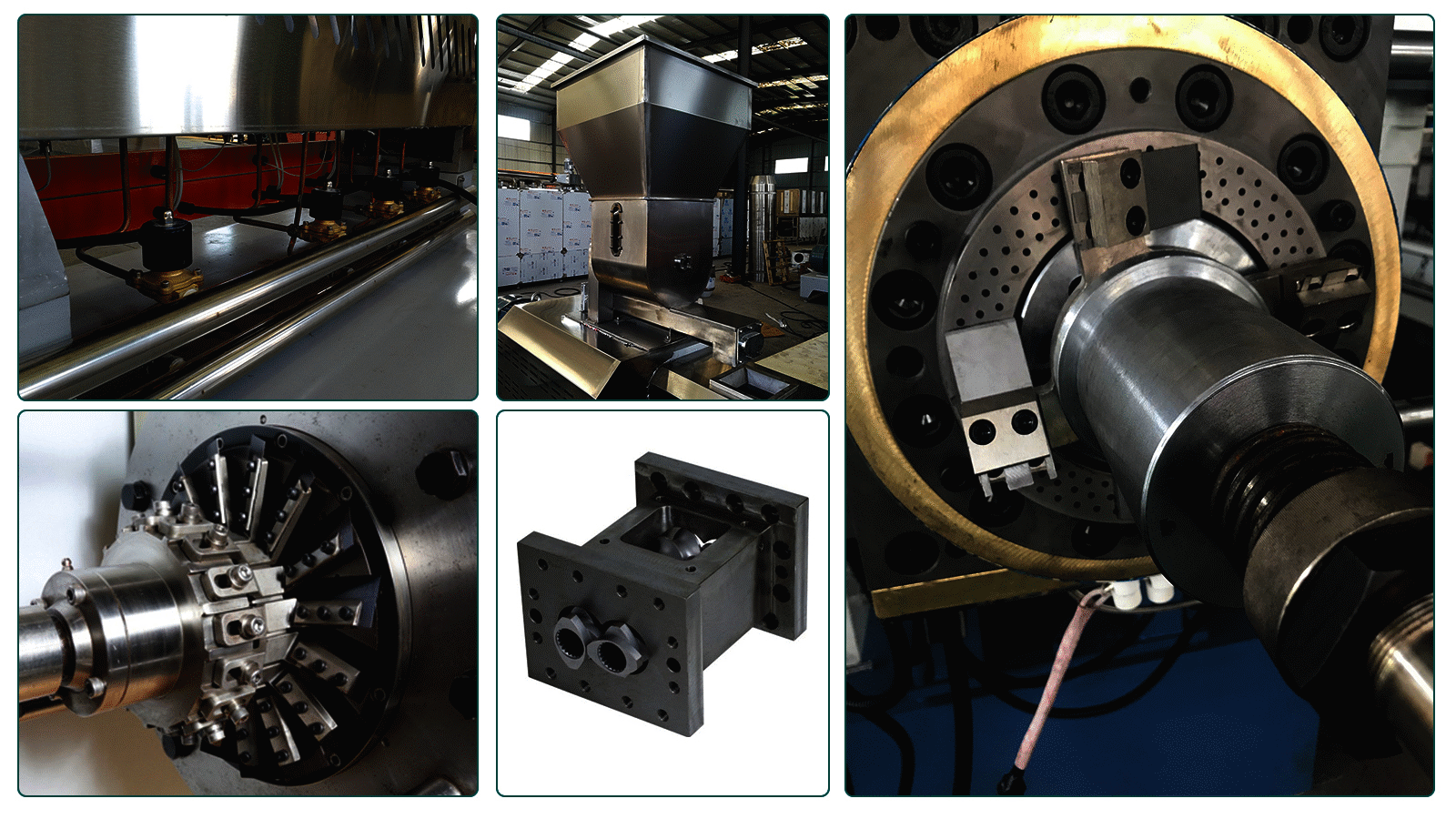 3. Soya nuggets extruder: After the raw material enters the extrusion system from the feeder, pellets are produced, and products of different sizes can be produced by changing the mold.
