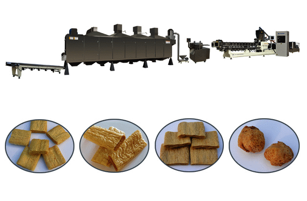 The extruder is one of the most important equipment in the production of soya meat. The application of extrusion technology is also the key to the production of soya meat, which is currently the most common production and processing method for the production of soya meat.