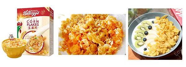 Corn flakes are a kind of breakfast with high nutritional value.They usually use corn powder and other cereals as main raw material,through mixing,extruding,flaking,drying,baking,coating and cooling,to get crispy flakes.It always applied to breakfast cereal mixed with milk or coffee.