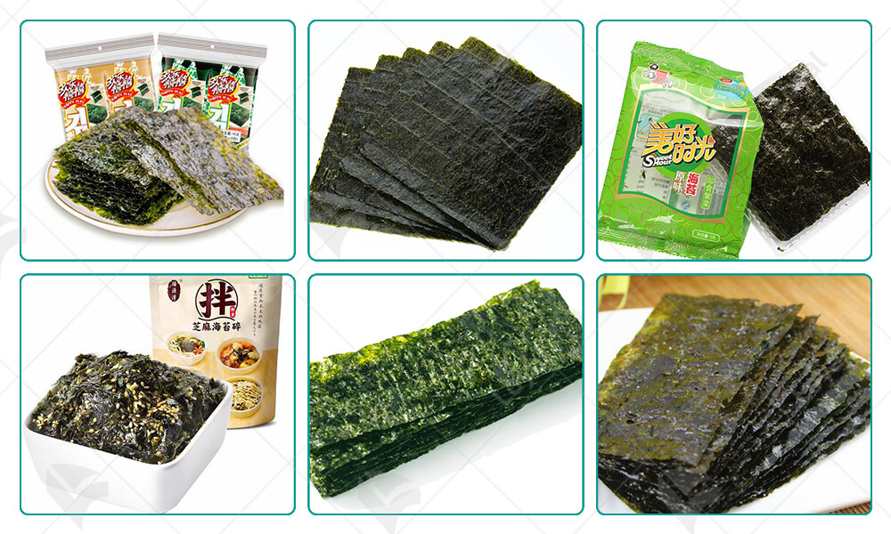 The whole Deep-fried Seaweed production line can automatically complete the production from Cutting,Blanching,Seasoning,Frying, Cooling,Packing to the finished product.