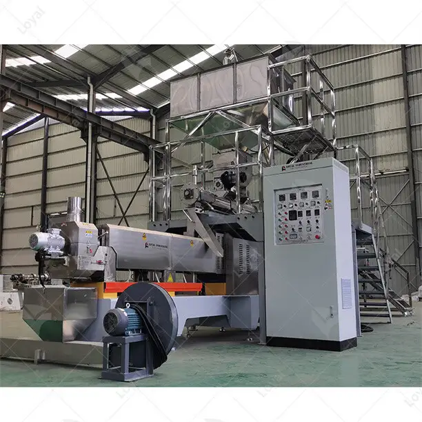 The Self-developed Twin-screw Extruder And Single-screw Equipment of Shandong Loyal Machinery Have Been Used In Production: Puffed Snack Food, Breakfast Cereal Corn Flakes, Fried Pasta, Bread Crumbs, Fruit Chips, Baby Food, Textured Soy Protein (tsp) Food, Fish Feed And Pet Food. a Variety of Snack Production Line Supporting Products.at The Same Time, The Batching, Drying, Flaking, Baking, Frying And Spraying Equipment Matching The Twin-screw Extrusion System Have All Achieved Independent Design And Production.