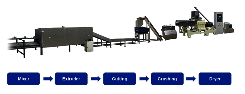 Bread Crumbs Production Line is a fully automatic production line, from raw material mixing, conveying, extruding and curing, molding, drying, and fully automated assembly line production. By changing molds, the crumb production line can produce various shapes of crumbs, including needles, granules, snowflakes, flakes, stars, or many other shapes, which can meet the different needs of consumers.
