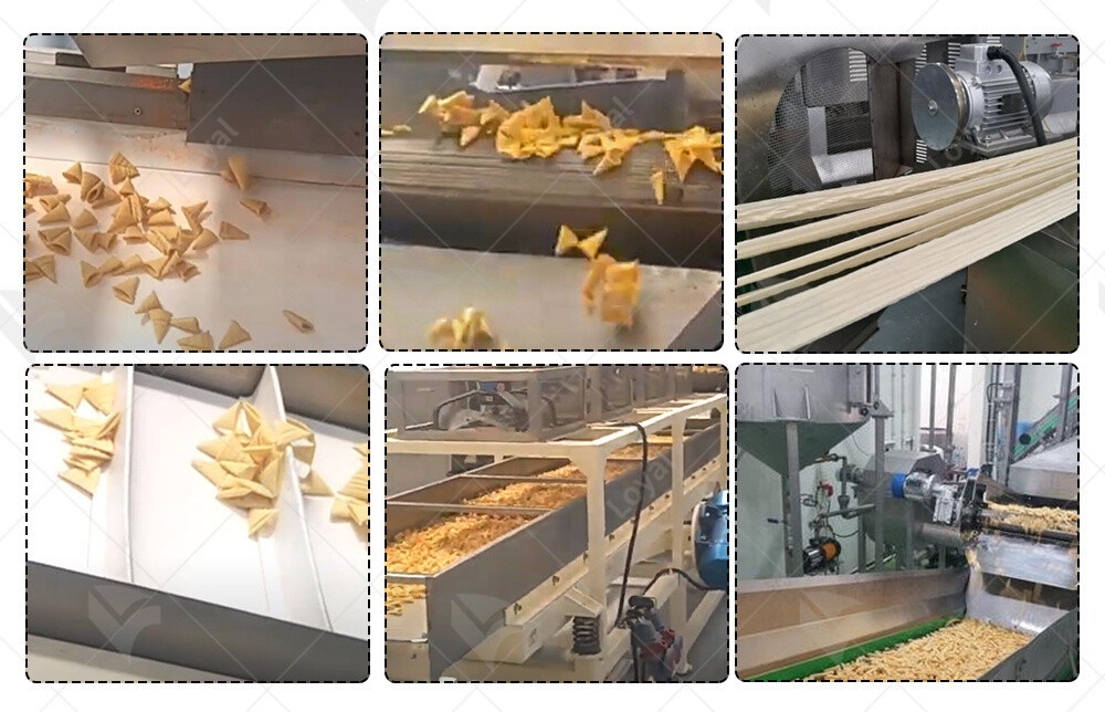 Millet Rice Crust Production Line Process Flow: Raw Material Preparation - Mixing - Extrusion - Cutting and Lifting - Automatic Frying - Seasoning - Cooling - Packaging